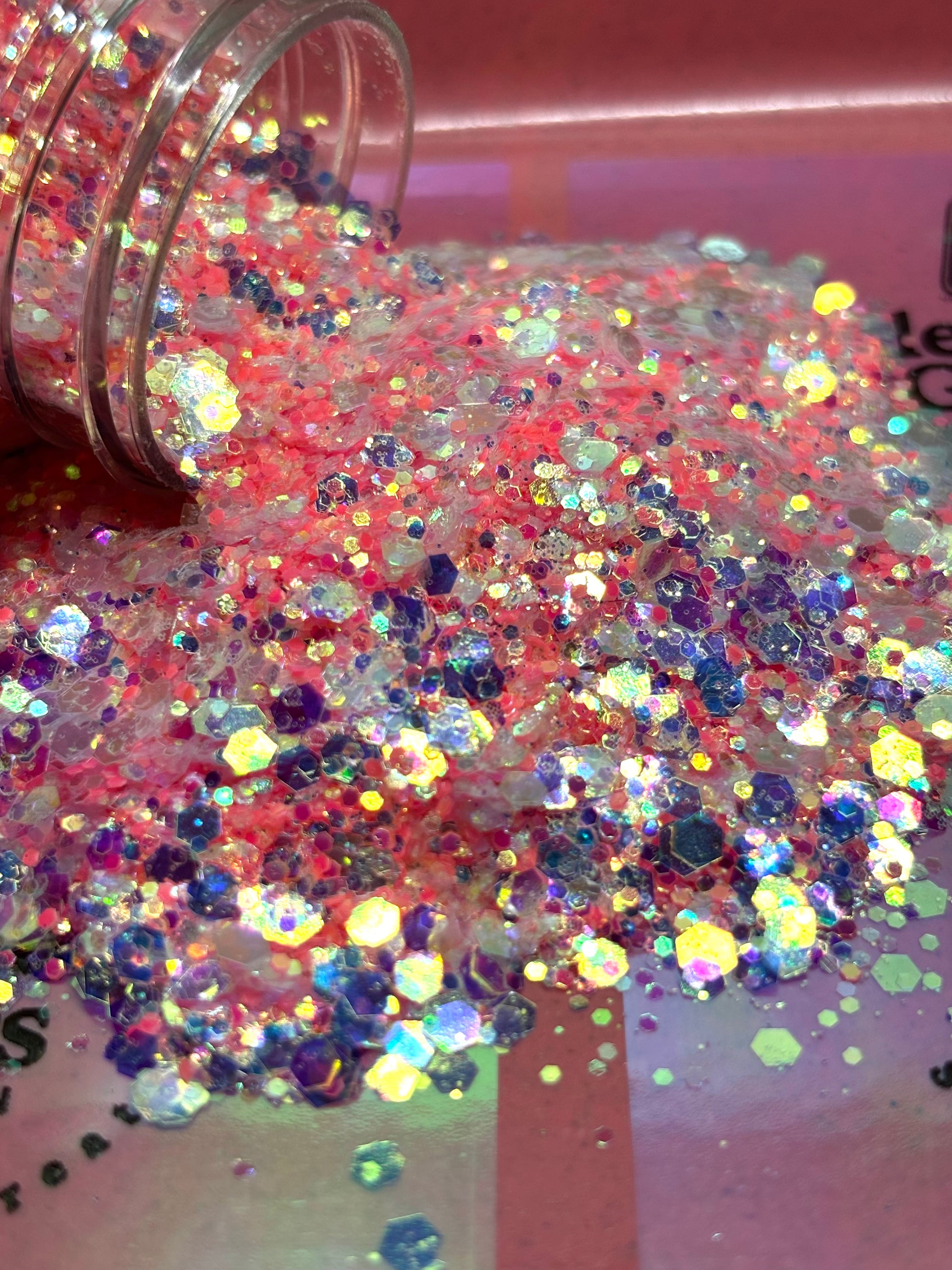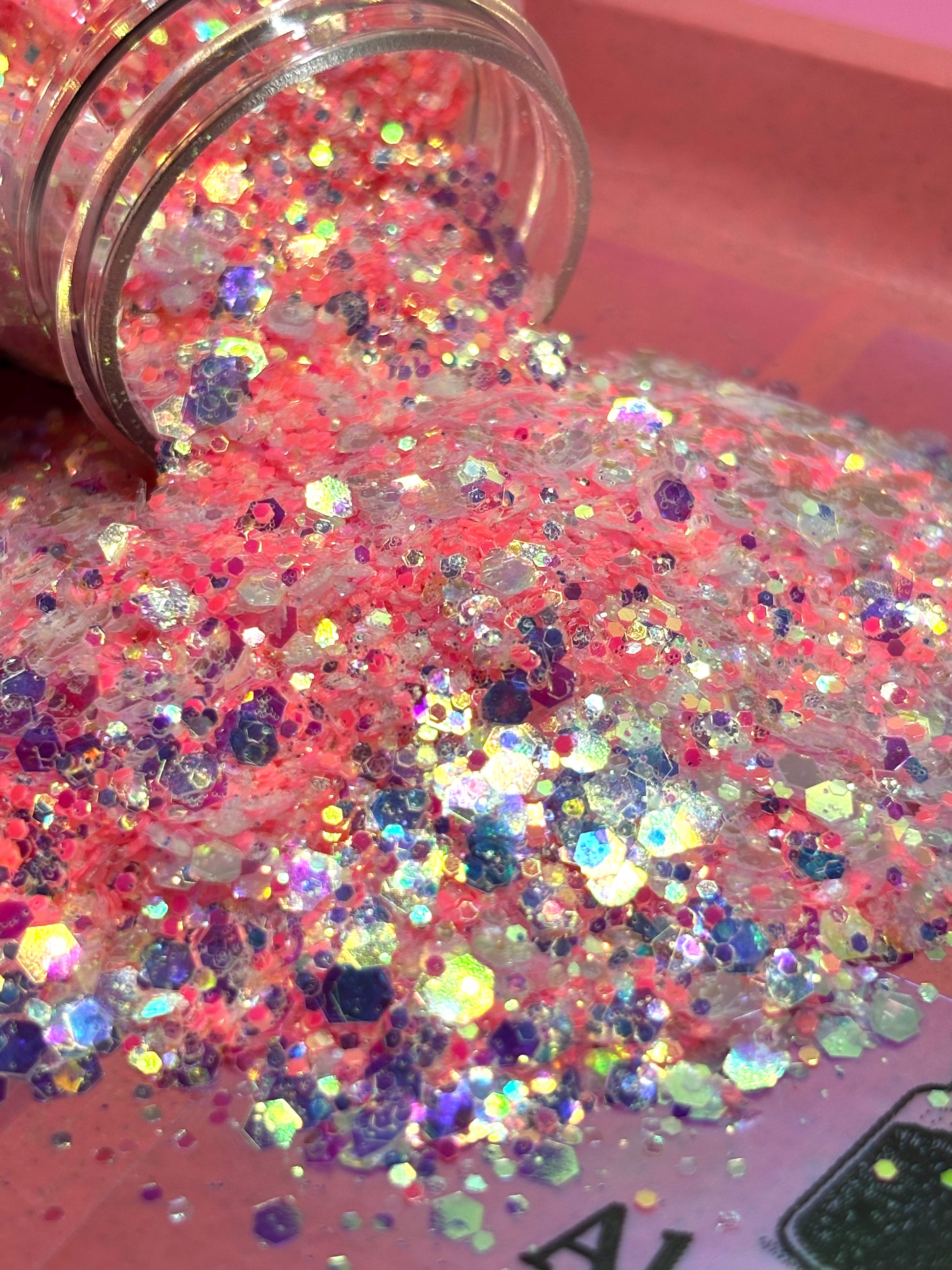 Crafted from premium cosmetic-grade PET polyester, this chunky glow glitter offers luminous reflection by day and a gentle radiance by night. Its durable formula stays bright through resin, epoxy, and tumbler use — delivering both charm and glow power that never fades.