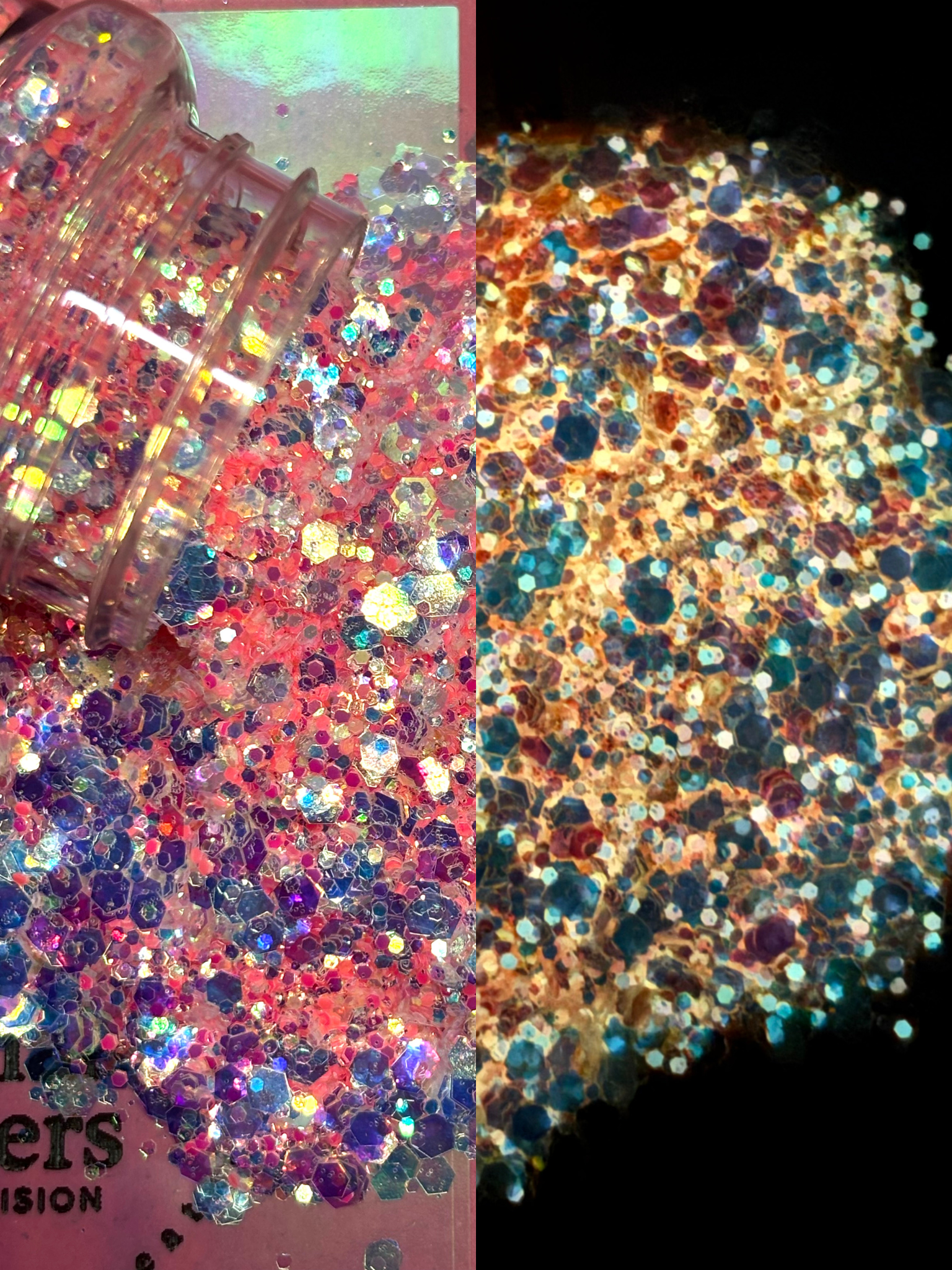 Sweet, radiant, and full of personality — Granny Girl Glow is the perfect mix of playful color and unexpected brilliance. In the light, it sparkles with a rosy-pink shimmer and soft holographic flashes; in the dark, it transforms into a glowing amber-gold hue that feels warm, cozy, and magical.